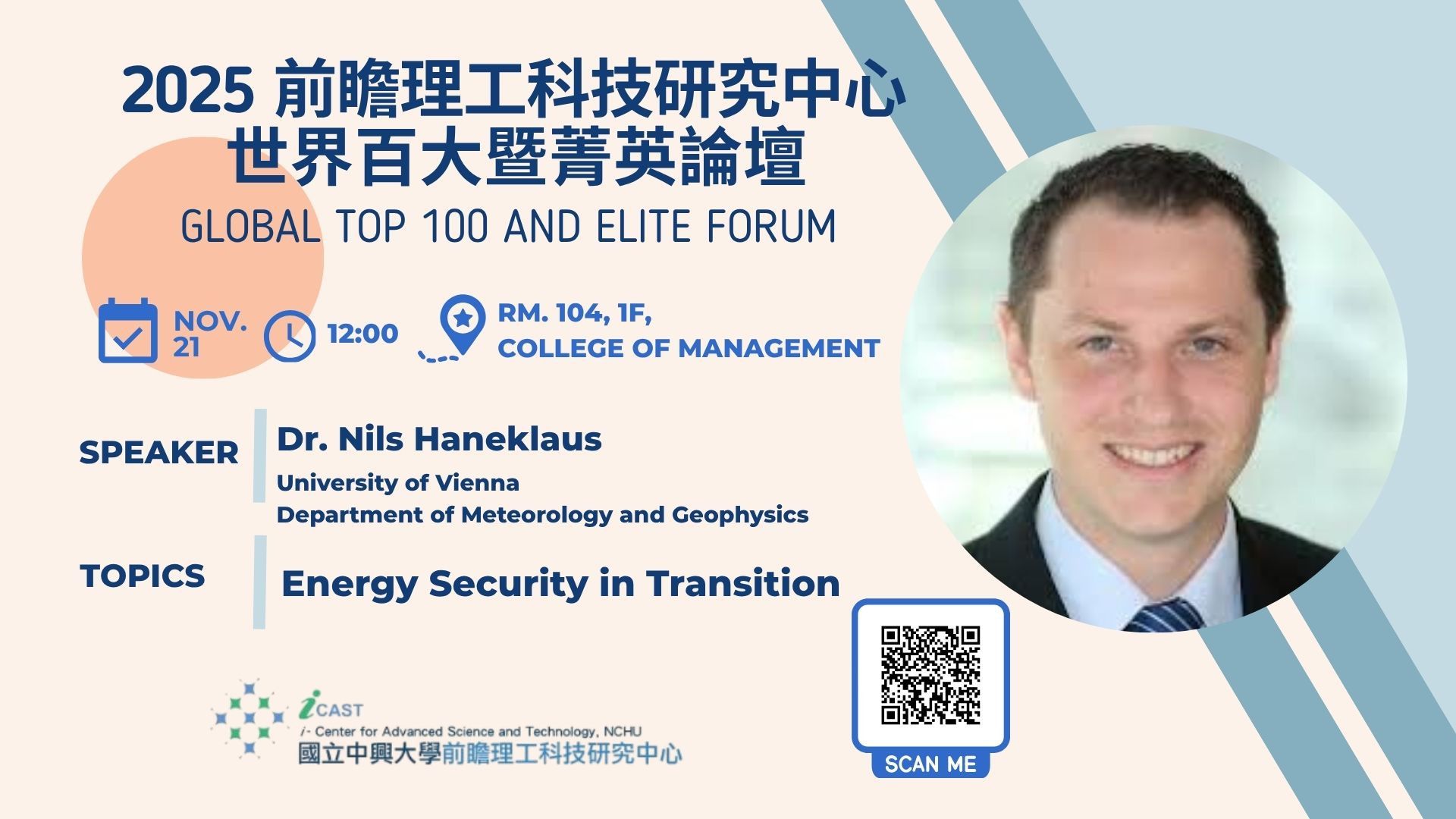 11/21 (五) Global Top 100 and Elite Forum : Dr. Nils Haneklaus
